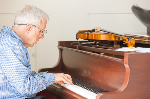 Bill Klein playing the piano at Spring Training